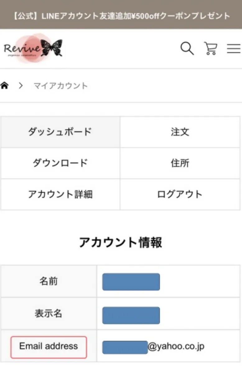 5. 公式LINEから誕生日クーポン申込フォームで入力したメールアドレスと、購入時のメールアドレスが異なっている